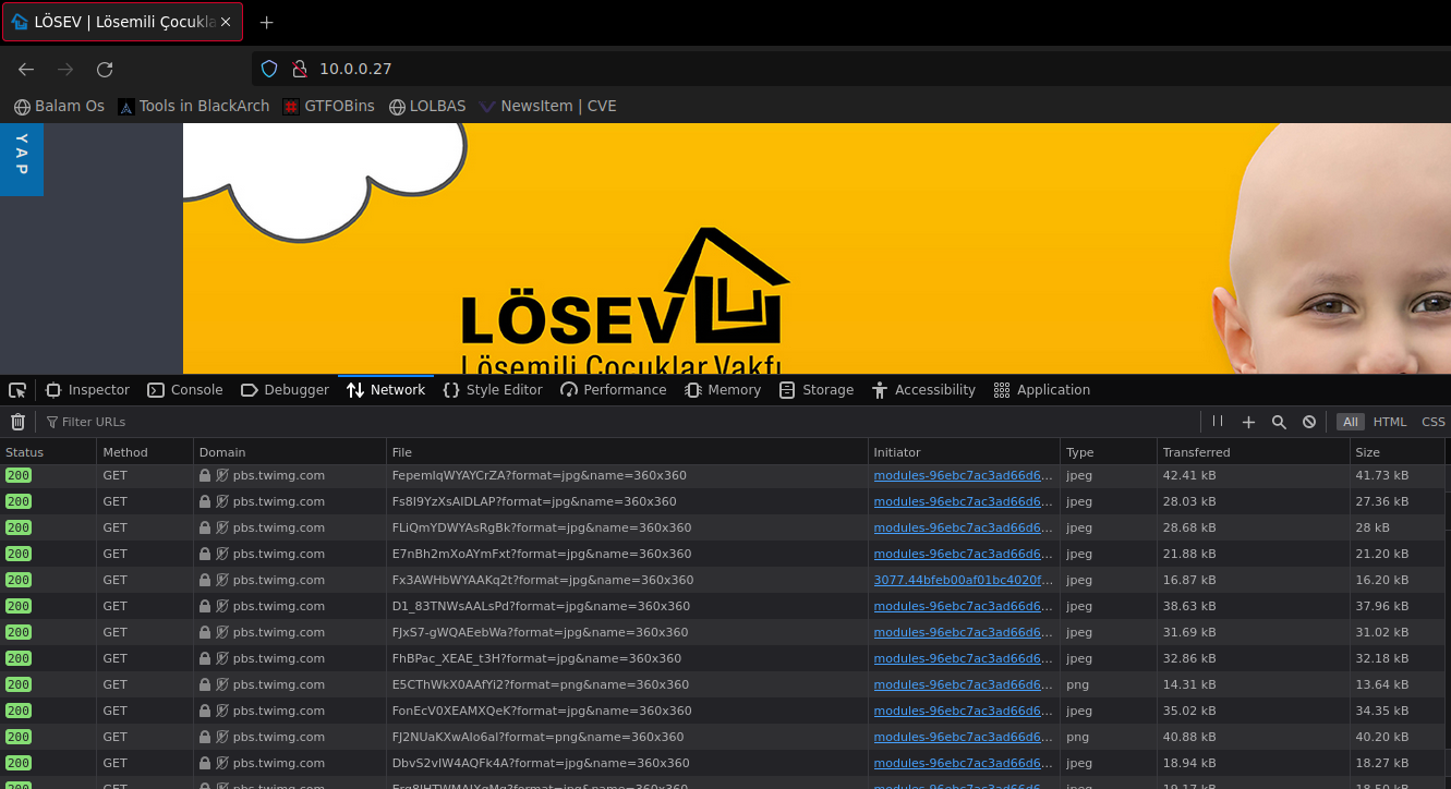 Durante la carga de la página si abrimos las herramientas de desarrollador y vamos a la pestaña de Network encontraremos muchas peticiones a servidores externos como pbs.twimg.com o loserv.org.tr