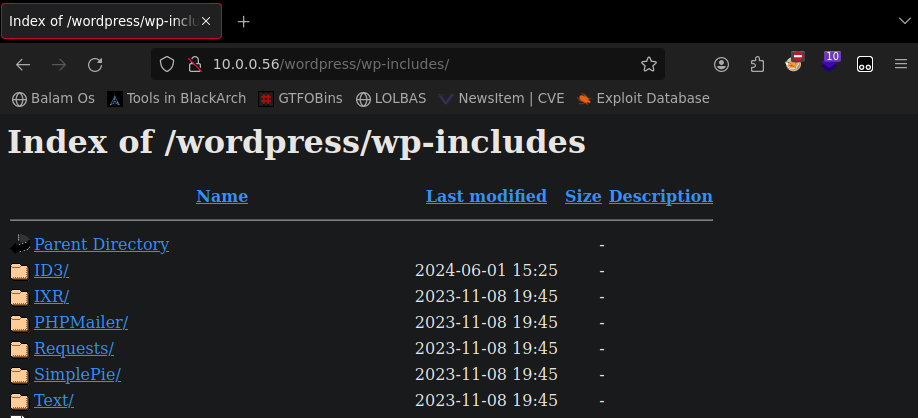 Found: [Status=301] [Length=322] [Word=wp-includes] http://10.0.0.56/wordpress/wp-includes