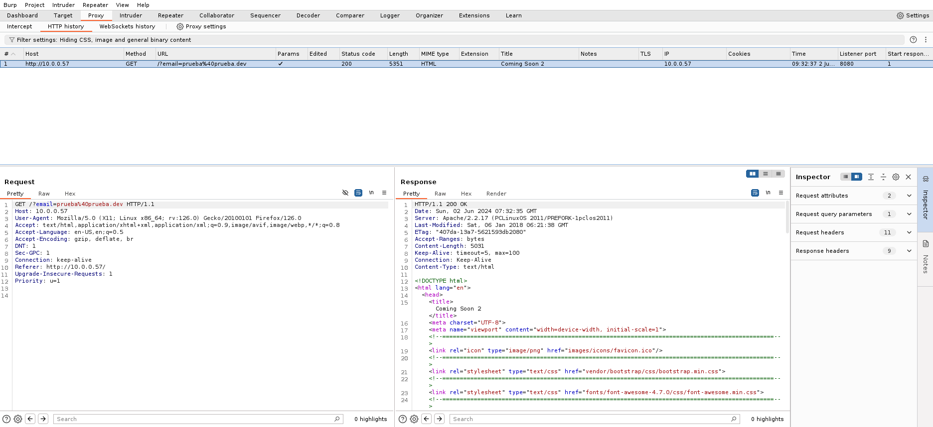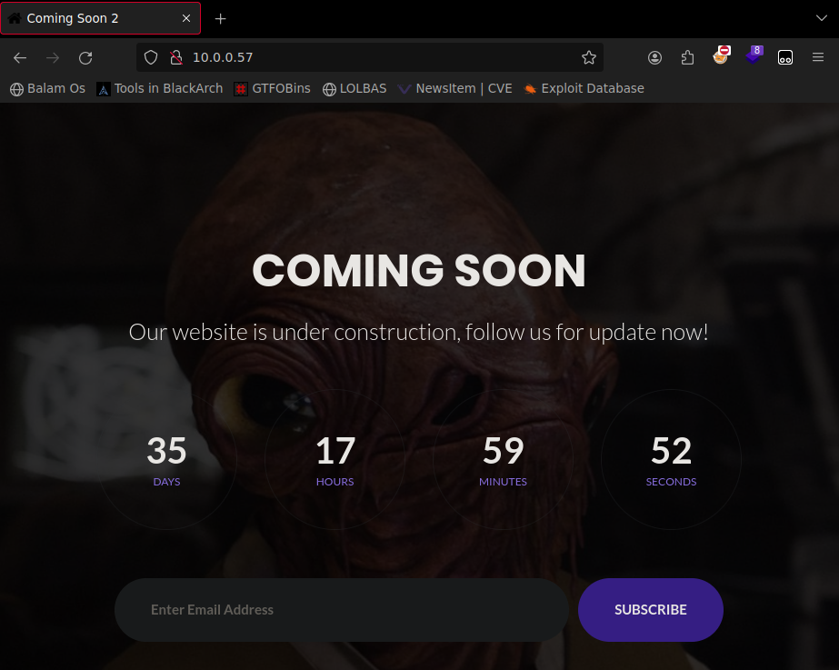 Vemos que hace una peticion GET, asignando el valor del correo a una variable email y escapando los caracteres especiales, con la sanitizacion va a ser complicado inyectar algo, vamos a ver si encontramos alguna pagina oculta
