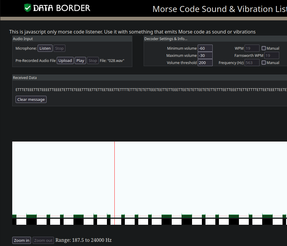 En el interior del archivo zip encontraremos un archivo de audio, si lo escuchamos veremos que son pitidos más largos y más cortos, asumiendo que es código morse vamos a ir a una página de traducción de audio a texto